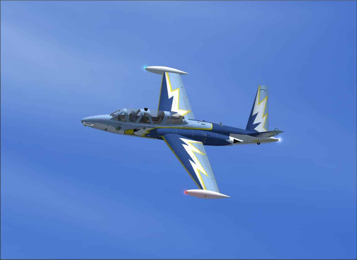 Fouga Magister French Air Force Team Fouga Meeting Red/Blue/White. The Fouga Magister (company designation CM.170) was a 1950s French two-seat jet trainer. The related CM.175 Zephyr was a carrier-capable version for the French Navy. Although it is often lauded as the first purpose built two-seat turbojet-powered trainer aircraft, similar claims are made for the Fokker S.14 Machtrainer whose first flight, production, and service entry were all about year earlier. Model includes virtual cockpit. Original model created by Jean-Pierre Langer