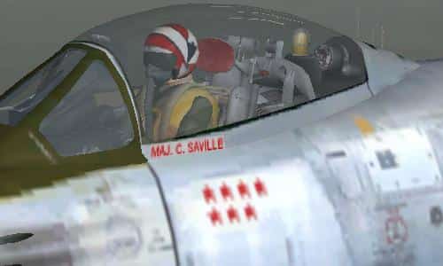 Textures only for Kirk Olsson’s F-86 Sabre. Requires Gmax F-86 Sabre Package. This is painted to resemble the F-86 flown in the 1958 movie “The Hunters” which starred Robert Mitchum. The aircraft was flown by the main character in the movie, Major Cleve “the Iceman” Saville. Repainted by R.E. Wyman.