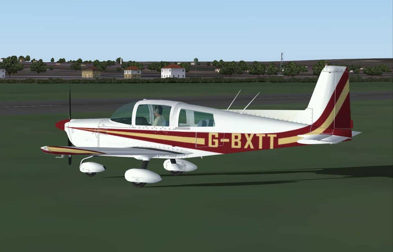 This is repaint #05 in my Real World series of repaints for the excellent Grumman AA-5B by Tim “Piglet” Conrad. This particular aircraft G-BXTT, is a 1978 AA5-B Tiger, Serial No. AA5B-0749 that can be seen flying all over the UK and sometimes into europe as well. I’ve modified the VC cockpit and 2D cockpit textures to display the plane registration correctly. All other textures are untouched. To use this aircraft repaint you will need the original Grumman AA-5B by Tim Conrad (AA-5B.zip). Includes the second fuel tank fix