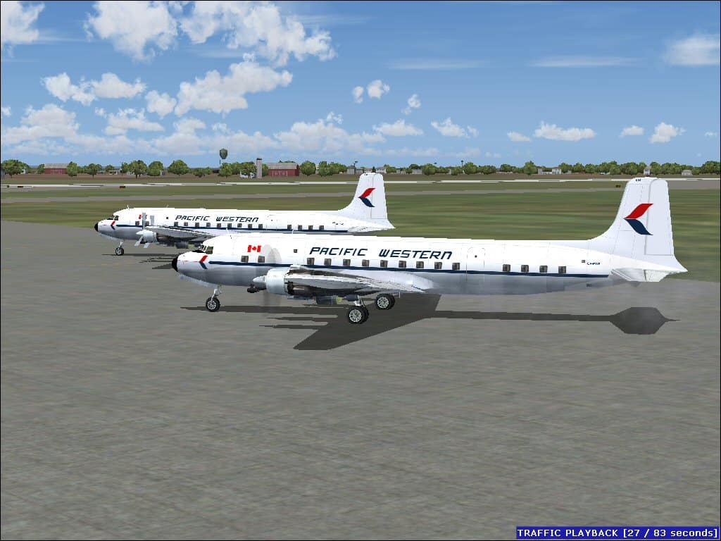 FS9/FSX Pacific Western Airlines textures for Greg Pepper/Tom Gibson DC-6B. These textures depict CF-PWF in 1969.