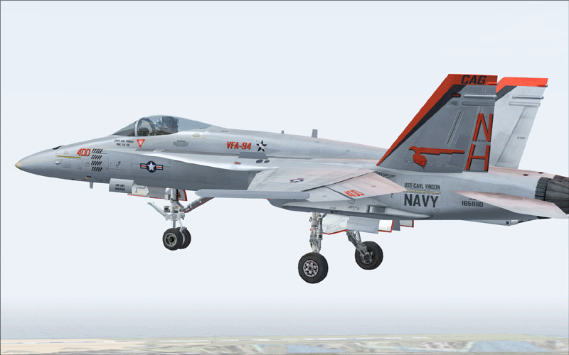 FSX Default F/A-18C Mighty Shrikes Textures only. Repaint of VFA-94 Mighty Shrikes. F/A-18C Hornets using Acceleration default F-18. Textures only. By Ray Gagnon