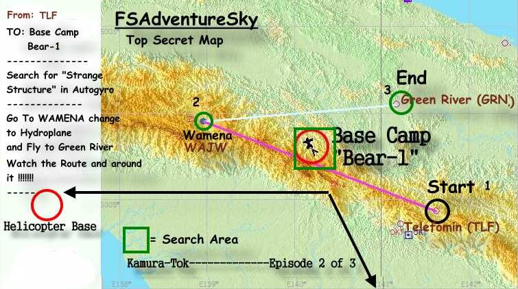 FSX Adventure SkyRoad to Kamura-Tok Episode 2 of 3. ” Need your services again” said the Telegram. “This time you must fly on a commercial flight from Panama to PORT MORESBY (AYPY) IN PAPUA NEW GUINEA…PLEASE USE YOUR OWN ROUTE TO GET THERE, THE FASTEST ONE THE BETTER.——Then fly to TELEFONIN (TLF). There you must hire a good Helicopter and fly to our Mountain Base ” Bear-1″ as you do please divert to the Lake in the flight plan and check on the Strange objects by the large rocks, do take as many photos as you can. Don´t try this flight in an airplane for the landing here is only possible with a Heli”….this communication came from Dr. Faustin who had taken the “parchment” to Barcelona 8 months ago. An FSAdventureSky Adventure. 428K