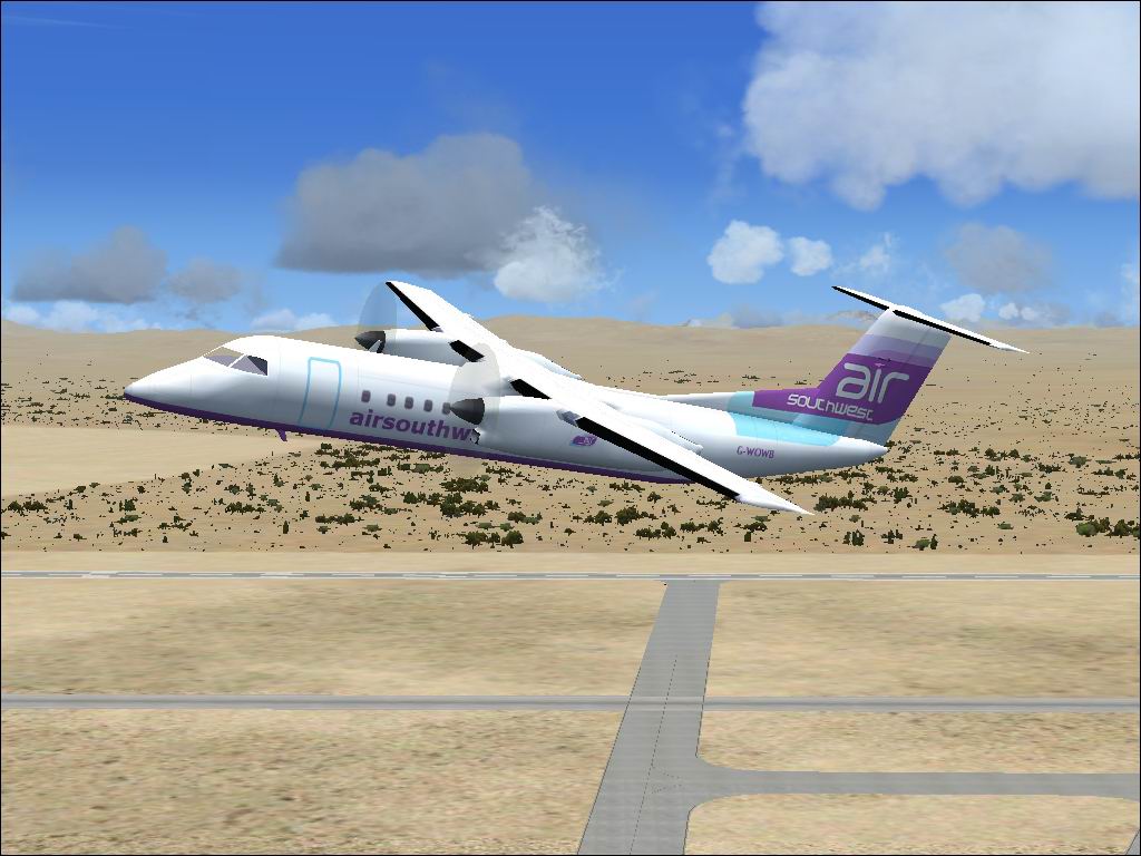 FSX Air Southwest DHC Dash 8. Includes photorealistic tail. This package includes G-WOWB. Original aircraft by FS Painter. Textures by Ashley Flynn. Adapted for FSX by Eric Buchmann. 3.3MB
