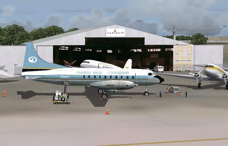 The Convair 640 was an American twin-engined medium-range airliner first flown in 1965. The Convair 640 was a turboprop conversion of the Convair-Liner 340 and was powered by two Rolls-Royce Datrt Rda.10 Mk 542-4 turboprops providing a top speed of 482 kmh and a range of 4835 km. Caribair CV-640 update for FSX