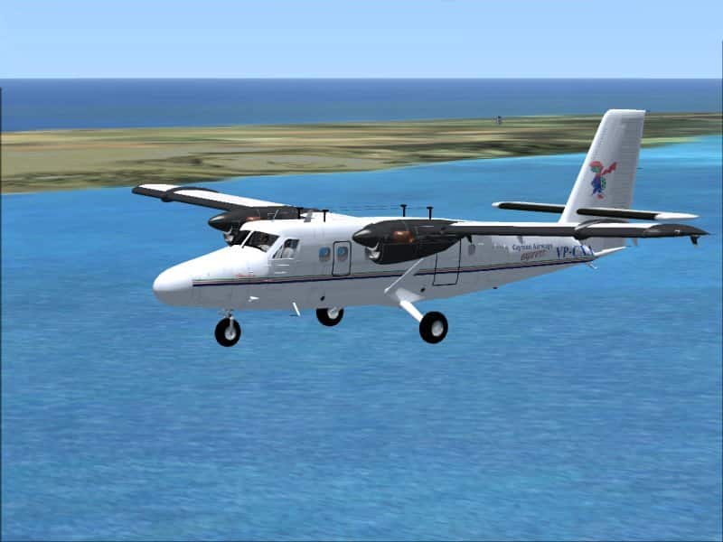 FSX De Havilland DHC6-300 Twin Otter Cayman Airways Express Reg# VP-CXA. This Twin Otter flies regular services in the Cayman Islands of the Caribbean. Includes panel, Dynamic VC with a full cabin, Custom Sound. Model made in FSDS2/3 with wing views, Dynamic shine, full suspension, opening doors, and more. By Jean-Pierre Brisard, Barry Blaisdell, Bob May and Kevin Pardy – Premier Aircraft Design. 17.9MB