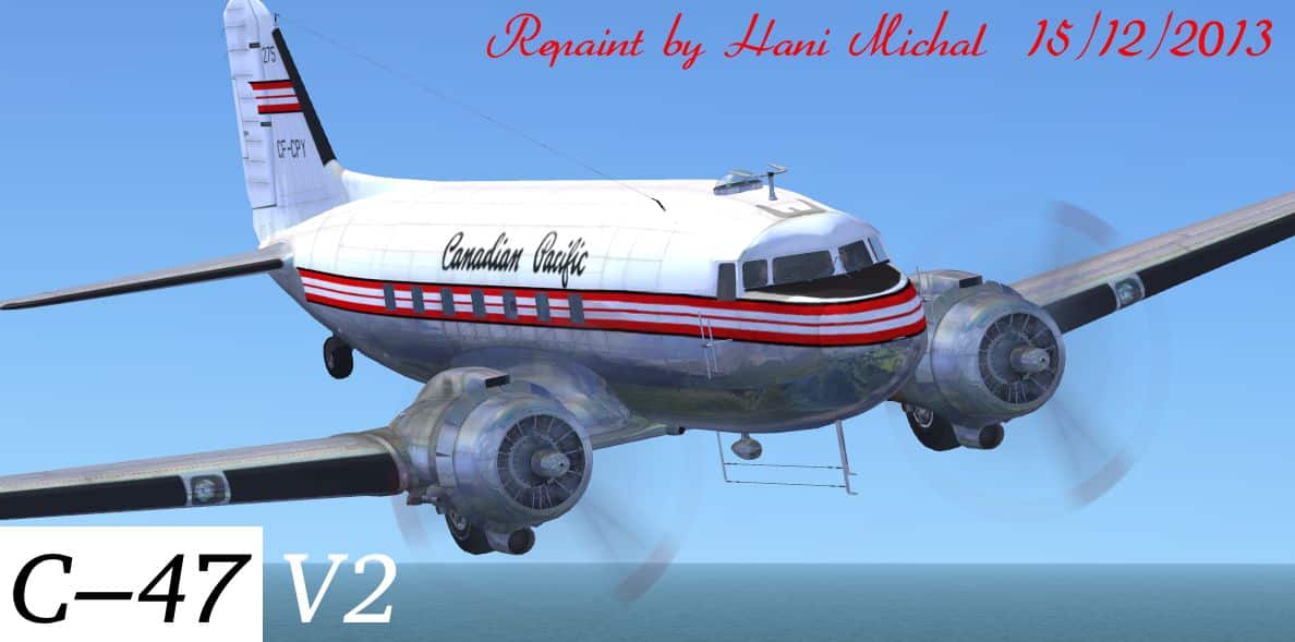 Are you looking for Microsoft Flight Simulator X Mods at one place? Then you have landed in the right place. If you have already chosen the file, click on Mod download button and follow the instructions. It’s as easy and simple as possible! FSX Douglas C-47 Canadian Pacific Textures Mod could be a great boost to your game and there are no reasons why to react negatively. Take the best that you can and don’t look back – you must be orientated to the future and new experiences.