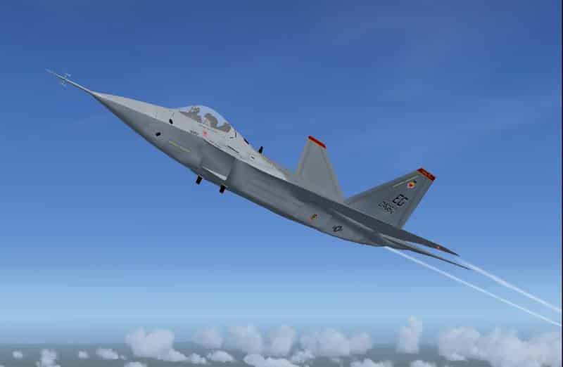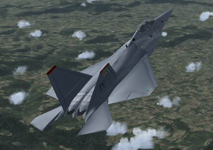 FSX F-22A Raptor Package. This F22 Product comes with a total of eight high quality textures covering some of todays leading U.S. Air Force squadrons, such as the ‘Fighting Eagles’ at Langley AFB and the ‘Black Widows’ at Luke AFB. Virtual cockpit included. The F-22 Raptor will become the replacement for the F-15 Eagle air-superiority fighter. It combines a stealth design with highly maneuverable, supersonic (supercruise) speed, with air-to-air and air-to-ground capabilities. Ex Iris Simulations FS2004 payware.. Not supported by or representative of Iris. Tested and thumbs added by Chris ‘Flying Eagle’ Evans.