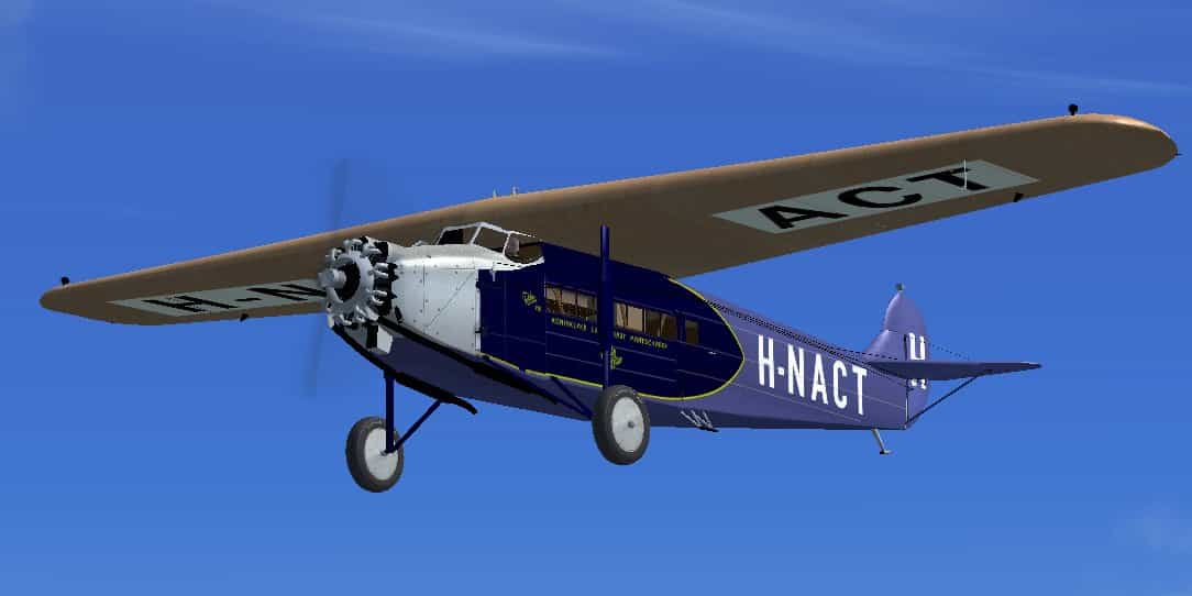 FSX Fokker F.VIIa in the markings of KLM, DDL (Danish Airlines), Balair and Swissair. The Fokker F.VIIa was a very succesful, single-engined airliner of the inter-war period. Version 2.1 modified for FSX. By Jens B Kristensen. 19MB