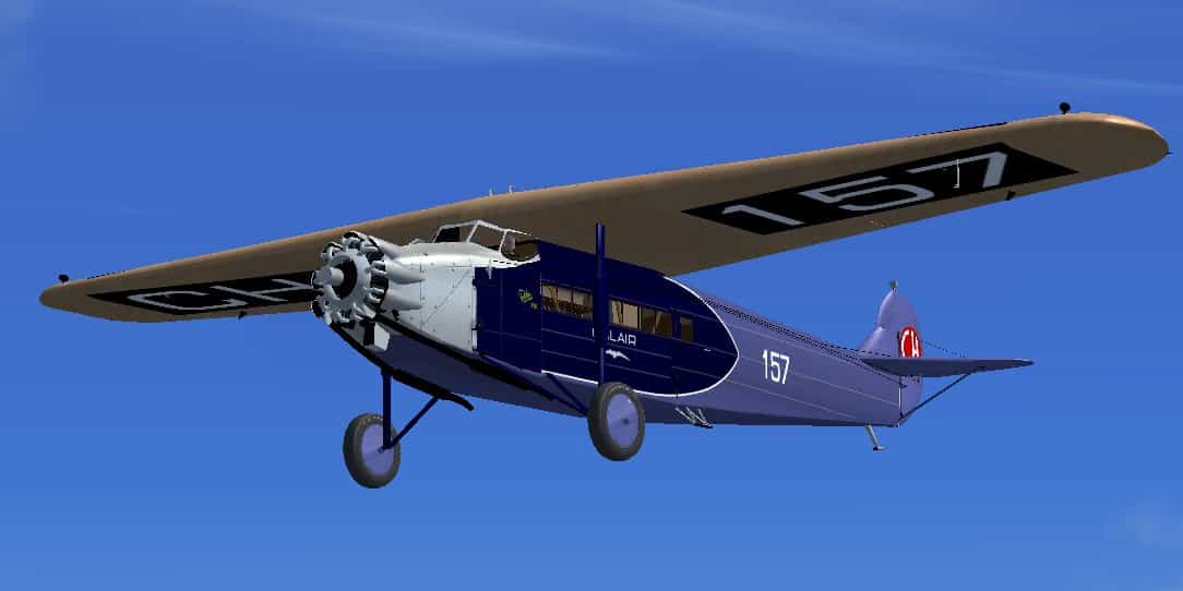 FSX Fokker F.VIIa in the markings of KLM, DDL (Danish Airlines), Balair and Swissair