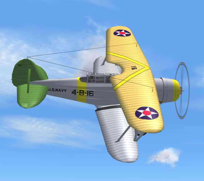 FSX / FS2004 Great Lakes BG-1. The BG-1 was designed to carry a 1000 pound bomb and first became operational in 1934. It remained in service in various capacities until 1940. This project is painted for VB-4 which was assigned to the USS Ranger (CV-4). It displays and flies equally well in both FS2004 and FS.X. It has the usual animations plus operating tail hook and retracting machine gun. The panel and VC are based on the similar Vought SBU-i and the VC has operating gauges and animated flight controls. By Paul Clawson. 6.4MB Update. This file contains a new .mdl file that corrects a texture mapping problem on the vertical fin and rudder of the original release. Just replace your existing .mdl file with the one in this release. It works in both FS2004 and FSX. By Paul Clawson. 201K