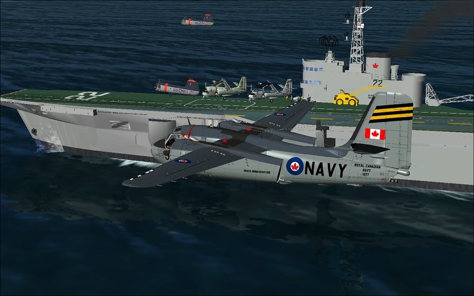 Its not great, but not totally pukeworthy either…Its a beta version as development is on going… Six of the 1942 design Light Fleet hulls were originally to be completed as Colossus-class ships, but the rapid development of carrier-based aircraft required modifications to the original design. The catapult, arrestor cables, and aircraft elevators had to be upgraded to handle faster and heavier aircraft, while the flight deck was reinforced. The ship was built to Admiralty rather than merchantile standards , with warship scale water tight compartmentalization , torpedo protection scheme, armoured magazines and separate staggered boiler and machinery spaces. The modifications increased the full-load displacement by 1,500 tons, and the draught by 1 foot 6 inches (0.46 m). This led to the six ships being reclassified as the Majestic class in September 1945. Five carriers were launched before the end of World War II, with the sixth launched in late September 1945. Only Magnificent and Terrible were completed as designed; an axial deck light Fleet Carrier(CVL) outwardly identical to the preceding Colossus class CVL. The remaining ships were rebuilt to RAN,RCN and MLD naval specifications with the revolutionary Admiralty designed Angled Deck, steam catapult and mirror Landing Sight (the ‘Meatball’, or ‘Ball’). Its a generic Majestic as builds of the individual ships; all quite different in appearance, continues as time and interest permits. I figured I may as well put the latest version out, as its not too gawd-awful, and it would be a shame to waste Jens-Ole’s beautiful Bonnie and Mellie deck textures. While the size/scale and general outline is accurate enough for government work, rivet counters will continue to be outraged. FSX Acceleration enabled, 4 wires, one catapult, meatball, hi deff textures by Jens-Ole Kjolberg. Various deck parks of Trackers,HUP, Seakings, Gannets, Skyhawks, AI HUP, HO4S,and Seabat plane guard helios