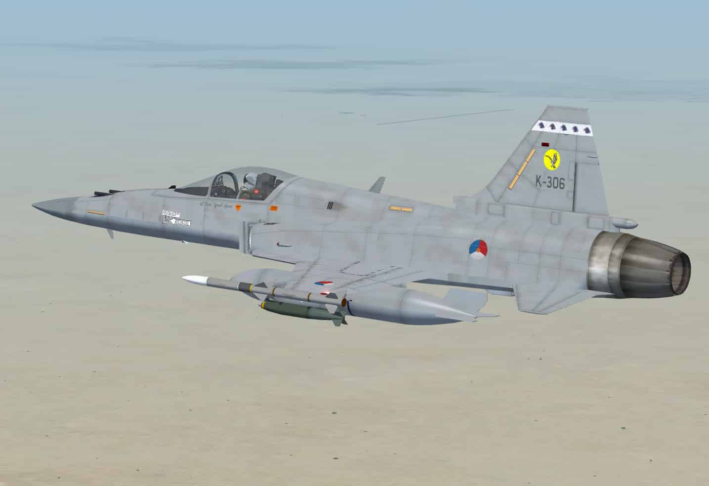The Northrop-Grumman F-20C in a fictional Netherlands Antilles based RNLAF livery. Despite the fact the F-20 never became an operational fighter it could have been an option for a low cost multi-role fighter for small countries, in addition for a more “all round” fighter fleet, especially in a more low risk environment. For such ordeal, the F-20 could have proven usefull for the RNLAF, ideal for remote areas such as the Netherlands Antilles. You need a copy of the payware F-20C by IRIS for FSX in order to use this repaint. Enjoy!