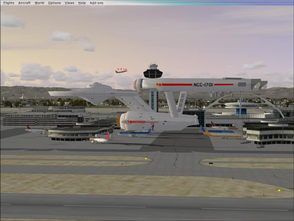 FSX STAR TREK ENTERPRISE – Version 1.0- A tribute to TOS (The Original Series) Star Trek. NCC-1701, Constellation Class, Starship, USS Enterprise. Model built on FSDS. High resolutuin textures. Funtional Virtual Cockpit. Animated doors. Landing lights. High level of details. Full package, easy to install.Includes non default gauges and sounds. Model and textures by RicardoPJr.
