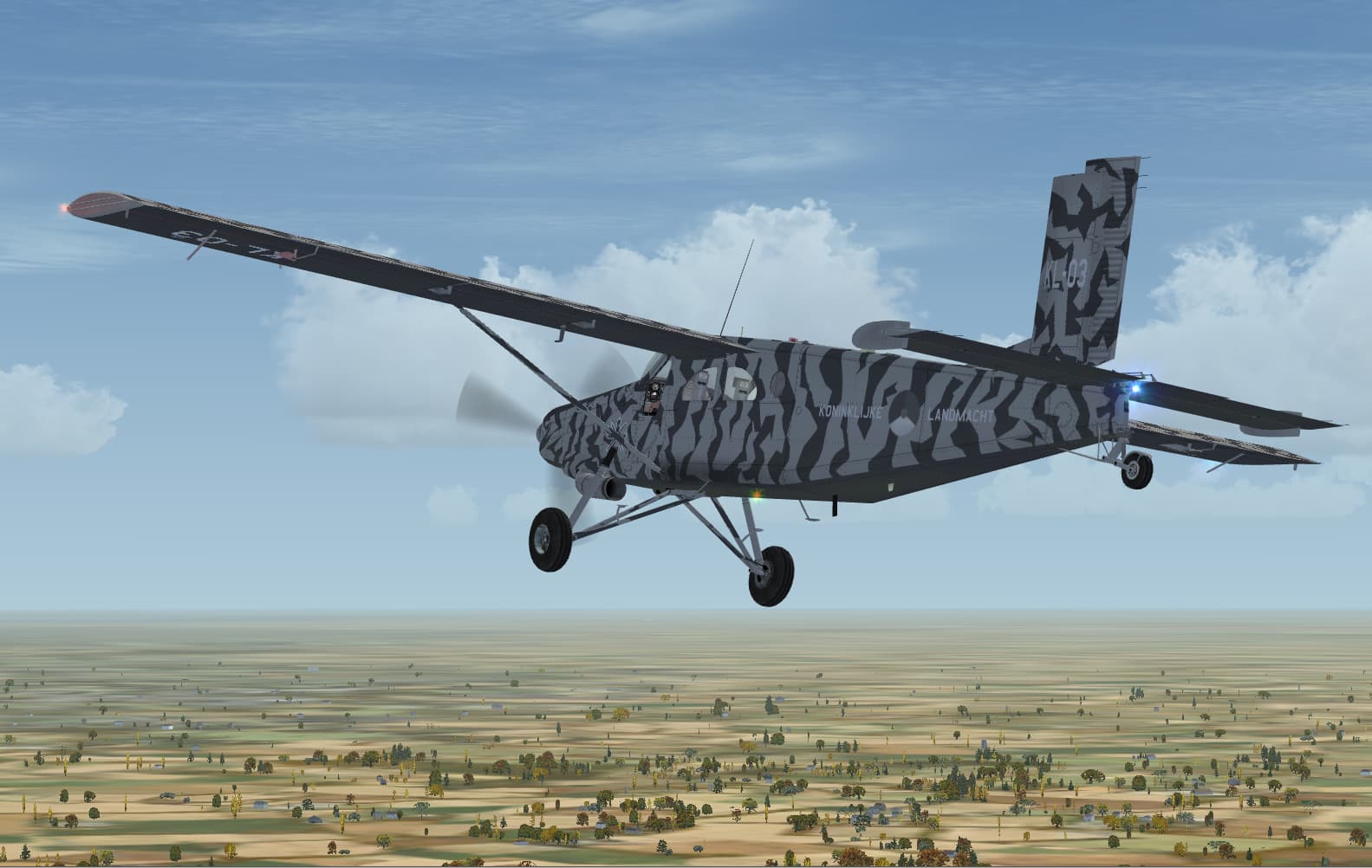 Pilatus PC-6C H2 Turbo Porter for FSX by Tim Conrad in a fictional Royal Netherlands Army livery. The PC-6C Turbo Porter has been an amazing contribution to the STOL aircraft fleet around the world for decades. It’s robust airframe and excellent aerodynamics make the plane very popular for para-drops, but also for supply missions in remote area’s throughout the globe. Despite it’s age the aircraft is still widely in use. This repaint represents a “what-if” livery for the Royal Netherlands Army (RNLA). In the far past the RNLA could depend on the Beaver and similar aircraft for light support and small batch para-drops (later the Fokker F-27’s performed these tasks). Nowadays they are performed by the Dutch “Defence Helicopter Command” (AS-532U2 Cougar’s and CH-47D Chinook’s) and by the 336 Sqn C-130’s. This livery resembles a fictional light utility aircraft registred to the Dutch Army, with corresponding low-visibility (and night-ops optimal) color scematics. The emblem and aircraft name belong to the “Korps Commando Troepen”, the Dutch Army Special Forces based at Rosendaal. The name “Achnacarry” denotes the place in Scotland where the Dutch Commando Unit was founded in WWII. You need the excellent freeware PC-6C H2 Turbo Porter by Tim Conrad in order to use this repaint.