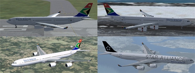 Textures only package for use with the Thomas Ruth A340 series. Version 3 updates include new color shading, titles, correct window configurations, lightmap, and new Star Alliance livery with registration ZS-SNC.