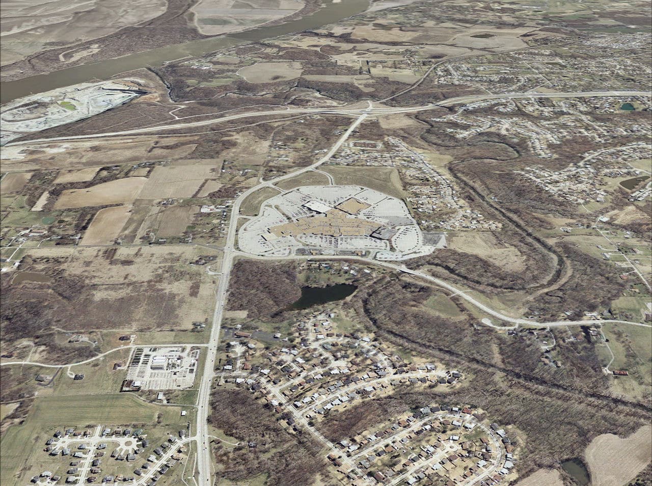FSX St Louis PhotoReal Scenery. This is high resolution, 1 meter/pixel, terrain scenery for St Louis, Missouri (MO). Section, C, is one of 30. A map and descriptions show the section locations and some feature details. This photoscenery is for DAY USE ONLY and will work for any season, but shows only the USGS aerial photo data taken in March 2002. The default FSX mesh works well with this photoscenery and no additional mesh for the area needs to be purchased. The 30 sections of scenery, totalling 2 Gb, contains photoreal terrain textures, encompassing an area bounded by 31.7 E-W and 27.4 N-S miles (about 870 square miles). Each section is independent, but the user may want most or all sections to provide continuity and completeness. By Jim Jones.