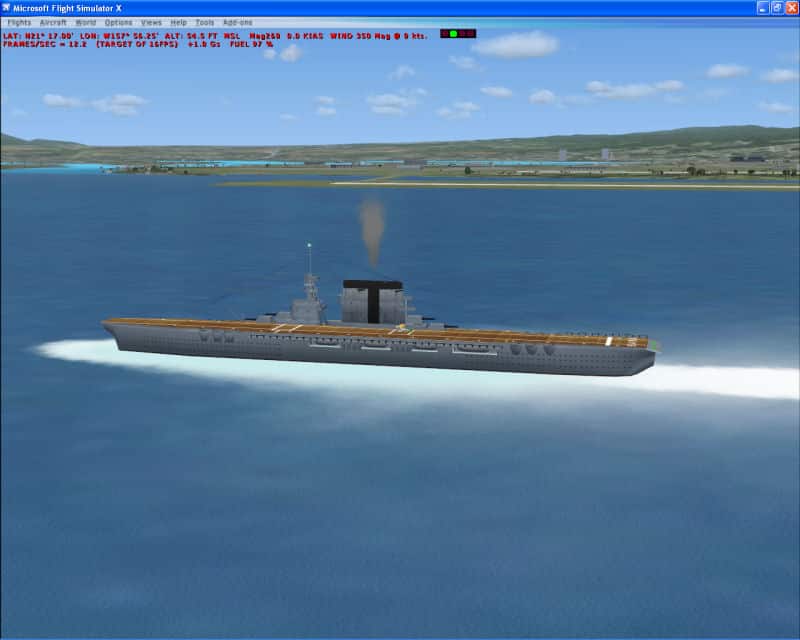 FSX USS Carrier Saratoga CV-3 This is a true FSX scenery object compiled with Xtomdl. It features an exact shape hard deck for carrier ops with airplanes equipped with rcbco-30 (not included). It also has a smoke effect, ship wake and a rotating beacon. A night texture is included for night carrier ops. It is located just outside Pearl Harbor. The files necessary to move it to other locations with the FSX SDK Bglcomp program are included. By Paul Clawson. 474K