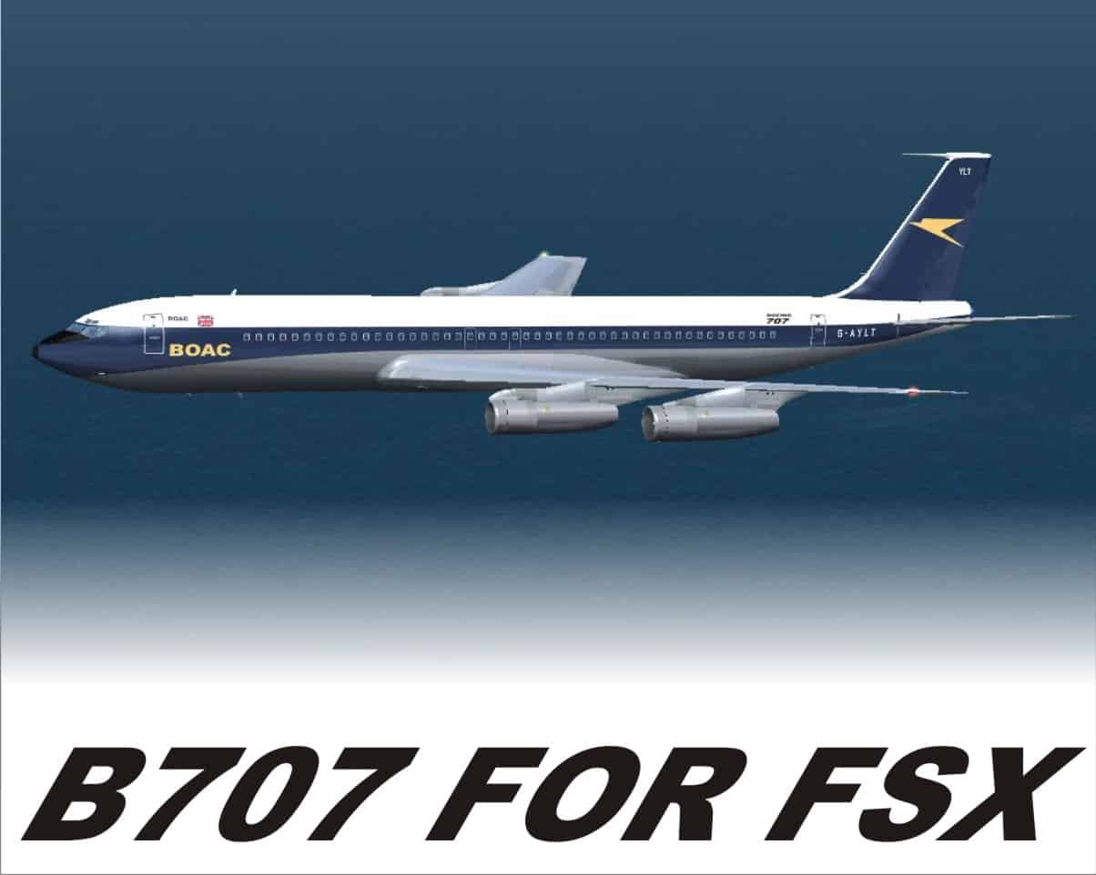 FSX/FS2004 Boeing 707-336C G-AYLT BOAC Textures only . Requires B707X.zip and B707XFIX.zip (above). Which is necessary to show the fan rotation and interior engine textures. By Libardo Guzman. 3.8MB