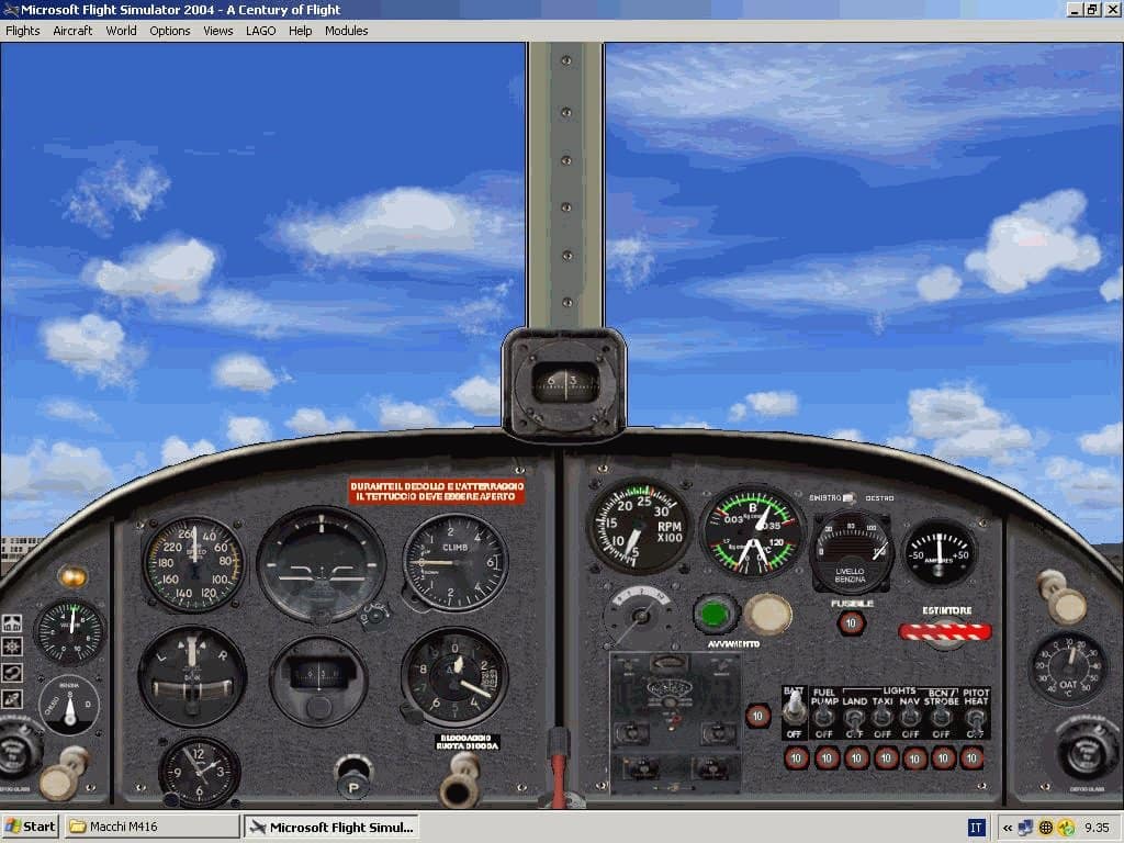 This model reproduces the aircraft on display in Vigna di Valle Aeronautical Museum (near Rome) and features reflective metallic skin plus full animations. The panel background has been created entirely from scratch, based on photographic material found on the net and some photos from official documents. Most of the gauges are default gauges and some have been created by the authors. Included in this model there is also a simple Virtual Cockpit, with working essential flight instruments and animated flight controls. Capt. I. D’Attomo Capt. G.Quai
