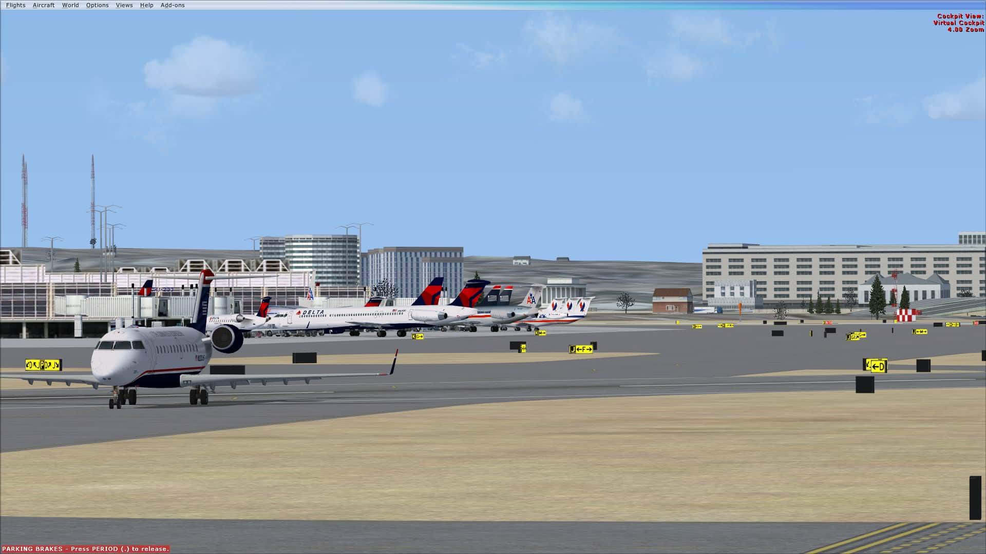 Reagan National Airport KDCA 2011. This is a complete revamp of the Reagan National Airport in Washington DC. Done with the default scenery, with all gates re-assigned, taxiways and aprons redrawn without the intermittent concrete areas that caused a major “frame rate hit”. Also includes the Anacostia Naval Annex accross the Potomac River where “Marine One” stays while not on mission. Anacostia Naval facility is staffed with personnel assigned to HMX-1 at MCAF Quantico. By Ryan Cobb.