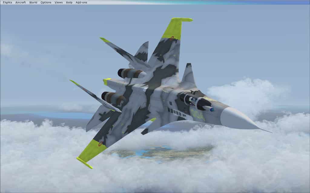 This is a major update to Yosuke Ube’s SU-35. Updates include: Texture pack from UKMIL’s Flankers, aircraft.cfg and .air file update, Description and thumbnails. I had a hard time trying to find and get an SU-33/35/37 to work in FSX, so I was able to find a way to get this one working. Used with permission, and special thanks to Yosuke Ube, Yahia al Wajid, Bob Chicilo, John V. Kampen and Mike Durao of UKMIL. 2d panel but no VC.