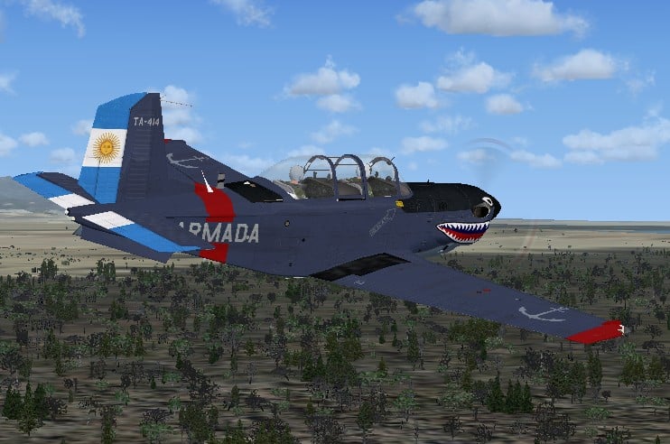The aircraft represented is a T-34C-1 of the Escuela de Aviacion Naval, Armada Argentina, as stationed at Punta Indio AB. These textures are intended for use with the Alpha Simulations T-34C Turbo Mentor payware aircraft package. Original release textures and this Repaint by Frank Safranek.