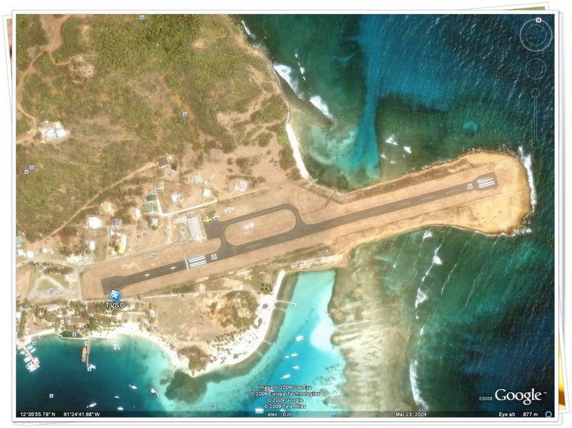 TVSU Union Island, Caribbean. Union island is part of St Vincent and the Grenadines archipel. It has one rwy 08/26 and is tower controlled. Palm Island on the easternpoint of the airport will be your reference point, VFR only as there is no radio navigation. I have developped the apron and parking lot including fishing boats since the marina is nearby. Hope you’ll enjoy your stop over in beautiful Union Island, really worth it! I have included the airport information but no charts available since under development. Daniel Louvet