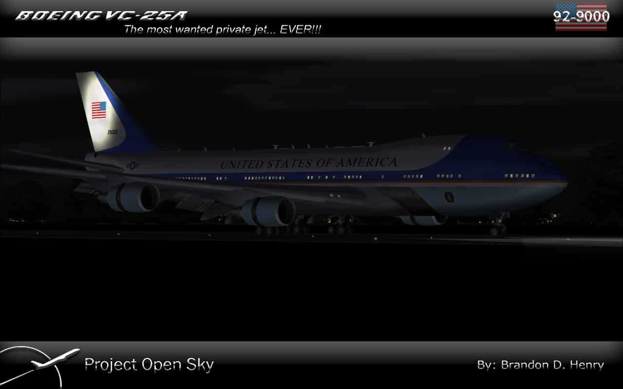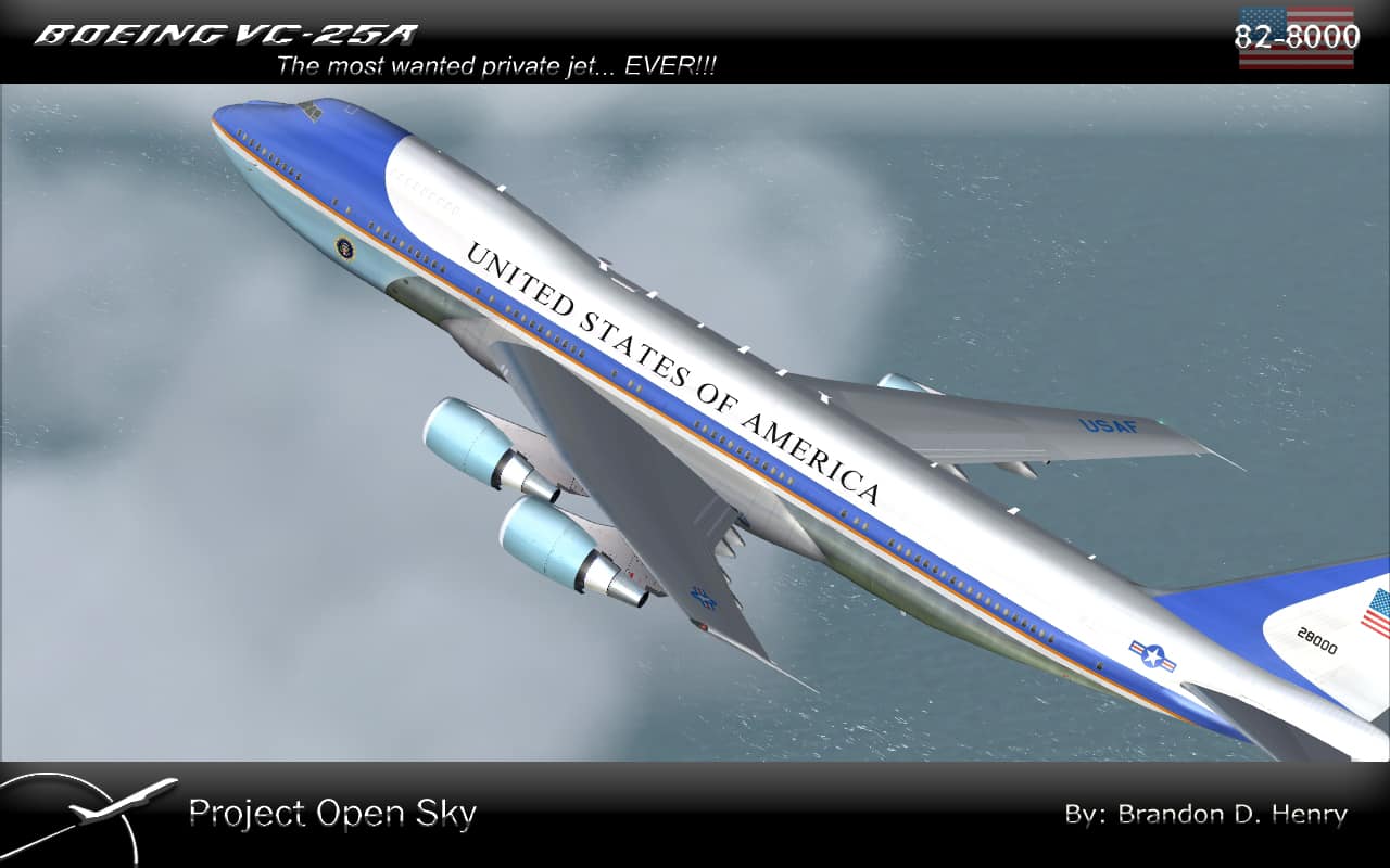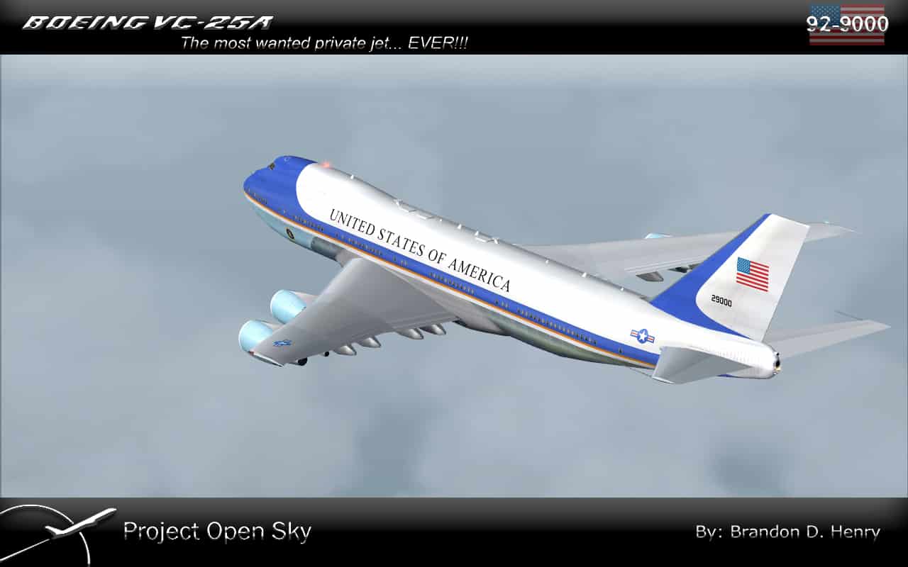 This is an update of Opensky’s VC-25A. Opensky used a “common files” folder for most of the textures. None of the textures in that file would display in FSX W/ Acceleration pack. By adding those files to each of the “texture” folders I was able to fix the problem. I added Steven Persson, Emil Serafino Jr.& Dennis Vormberge’s Realistic General Electric CF6-80C Sounds. I DID NOT change the Opensky design in any way.