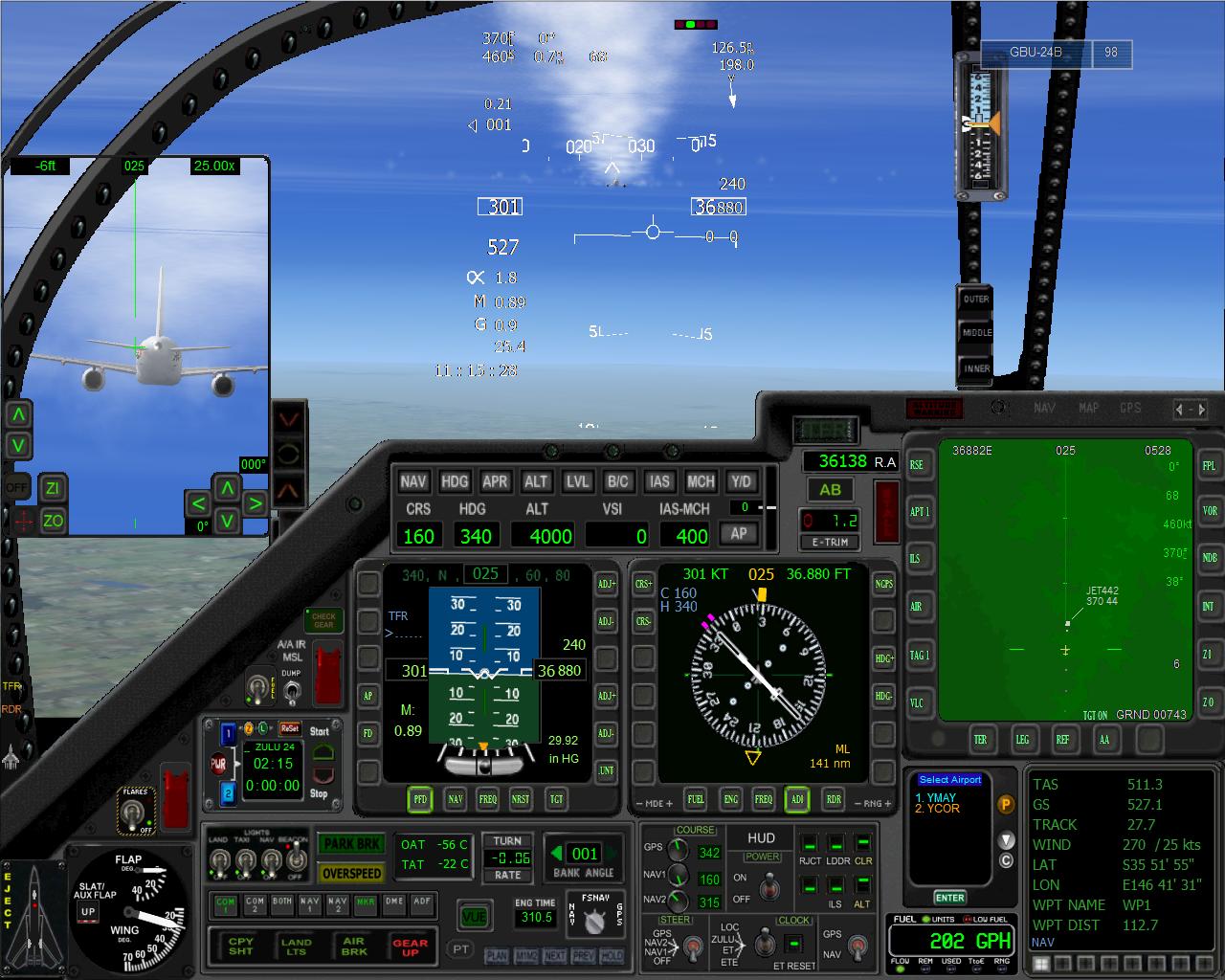 FSX Virtuavia F-111 PIG HUD Project – Navigation/Situation awareness cockpit. For use with the payware Virtuavia F-111. REVISION 6.UPGRADE. MUST already have fxpiggb5.zip installed. New features:In cockpit Pave Tack Display with full control allows views in all directions, pitch,zoom and altitude, Terrain shading added to 2 GPS displays, Virtual Cockpit layout improved, Flt Pln leg toggle SW,Precision airspeed capable,Revised 56 pge Flight Manual includes new TFR procedures. Adds to what is already an extreme capability panel and package packed with custom instruments and concepts not available in other aircraft. All instruments and text are sized to be clearly and easily readable. Includes enhanced HUD, multiple radars,GPS units,MFDs,and effects,TFR, autopilot/autothrottle, is Carrier and Air to Air capable,ICAO entry and day/night/IFR/VFR navigation with constant current position awareness. HUD available in all views including the 10 Camera views. This package sets the benchmark for the amount, type of data provided and its presentation. Possibly the best pilot friendly military aircraft available. By Karol Chlebowski.
