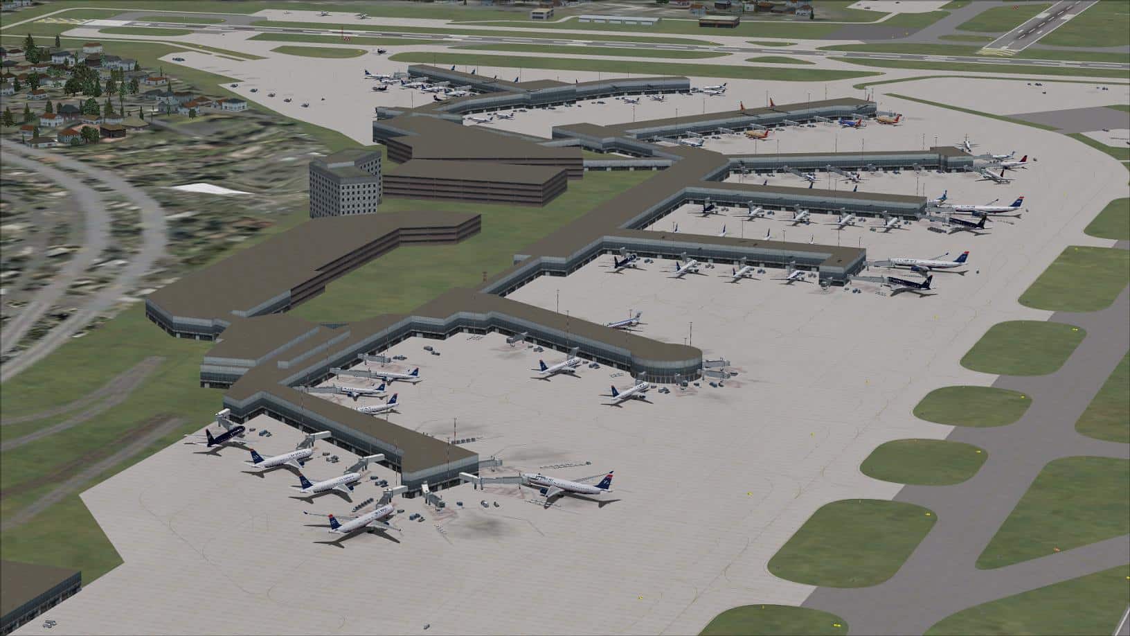 Philadelphia Intl – KPHL – Pennsylvania, USA. This airport update is for Prepar3Dv2 with two optional files, one file with the Crosswind runway 17/35 activated where all 4 runways will be used for takeoff/landing and one file as the default runway operation: assigned parking as per their website with extra parking, extra fuel trucks, taxiways and taxi signs updated to the latest charts, Marriott hotel also included, support vehicle roads rebuilt and many other scenery improvements added, airport views are from the roof of the control tower (when in tower view) please view the readme before installation. By Robert Catherall