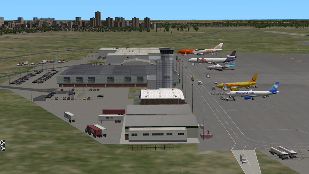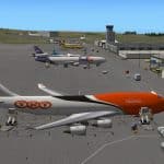 X-Plane 10 Ostend-Bruges International Airport (EBOS), Belgium, v1.0. This is the very first attempt to bring some life to one of X-Plane’s default airport layouts. It took quite some time and was truly “learning by doing” using only OpensceneryX and ruscenery with in WED and OED in XP10. The scenery consists of Apron 1 (Cargo), Apron 2 (Cargo and Holiday charter) and Apron 3 GA plus an aircraft demolition site. For those static aircraft A340s were used for display in lack of the original Meridian Airways DC8s. By Manfred Muller.